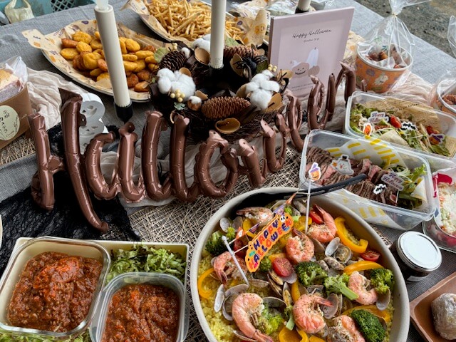 食べ物は料理やお菓子などみんなで持ち寄って完成。