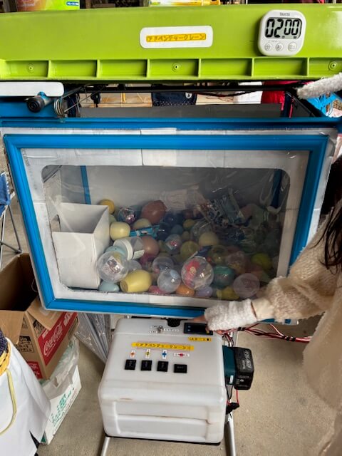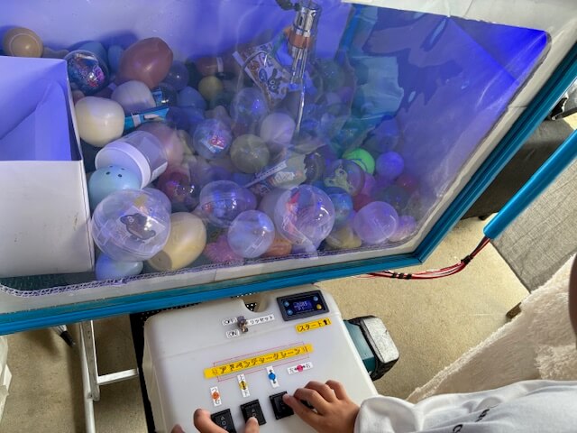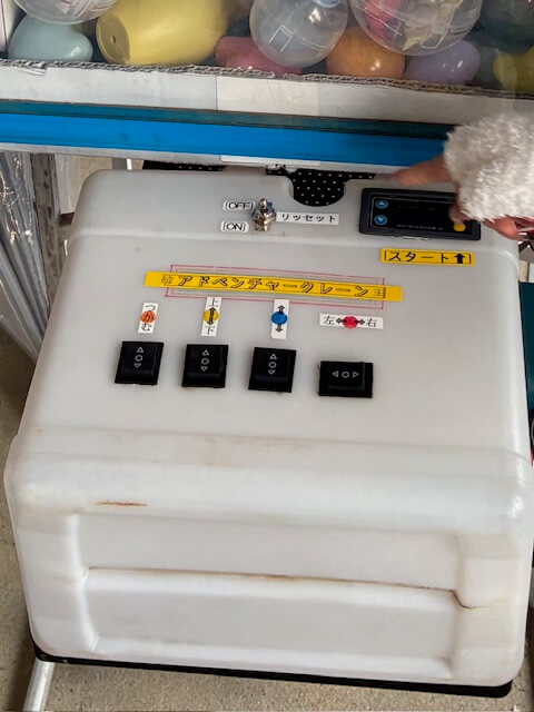 そしてお菓子やクジを入れてクレーンゲームを開始!